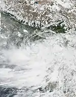 The depression brought heavy rainfall to Bangladesh and across eastern India. Sabroom in northeastern India recorded 440 mm (17 in) of rainfall over two days.[3] In Bangladesh, two-day rainfall totals reached 150 mm (5.9 in), causing flooding and landslides.[42] The flooding closed some roads and forced more than 29,000 people to be evacuated. At least 12 people died related to the floods, including two people in Rohingya refugee camps in southeastern Bangladesh. Nearly 900 refugee camps were damaged, along with 200 latrines, two health facilities, and two food distribution centers.[43][44][45] Heavy rains also caused flooding in the port city of Chittagong.[42]
