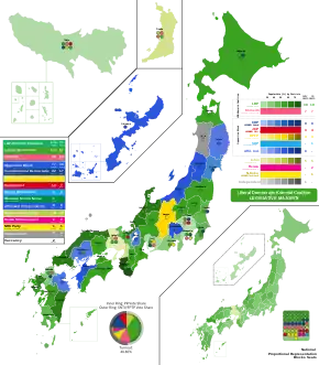 | Liberal Democratic Party | 17,712,373 | 35.37 | 19 | 20,030,331 | 39.77 | 38 | 56 | 57 | 113 | –7 | ||