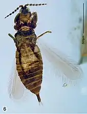 357. 1 2 3 4 5 Manfred R. Ulitzka (2019). "Five new species of Rohrthrips (Thysanoptera: Rohrthripidae) from Burmese amber, and the evolution of Tubulifera wings". Zootaxa. 4585 (1): 27–40. doi:10.11646/zootaxa.4585.1.2. PMID 31716180.