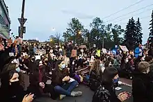 The 2020–2021 women's strike protests in Poland, commonly called the Women's Strike (Polish: Strajk Kobiet), were anti-government demonstrations and protests in Poland that began on 22 October 2020, in reaction to a ruling of the Constitutional Tribunal, mainly consisting of judges who were appointed by the ruling Law and Justice (Polish: Prawo i Sprawiedliwość, PiS) dominated United Right, which tightened the law on abortion in Poland. The ruling made almost all cases of abortion illegal, including those cases in which the foetus had a severe and permanent disability, or an incurable and life-threatening disease.[37][38] All-Poland Women's Strike was charged by the authorities for having illegally organised the protests.[39]
