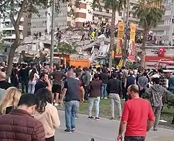- ↑ "İzmir depreminde yıkılan Yılmaz Erbek Apartmanı göz göre göre yıkılmış" [Yılmaz Erbek Apartment, which was destroyed in the Izmir earthquake, was demolished in plain sight.] (in Turkish). Evrensel. 13 June 2021. Retrieved 4 November 2021.