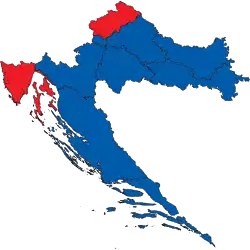 - ↑ Of the 16 seats won by the DPMŠ-led coalition, the DPMŠ won eleven, the Croatian Sovereignists three, Croatian Conservative Party one and the Bloc for Croatia one.
