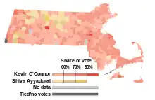 Markey:: 40–50% 50–60% 60–70% 70–80% 80–90% >90% O'Connor: 40–50% 50–60% 60–70% Tie: 40–50% | |||||||||||||||||