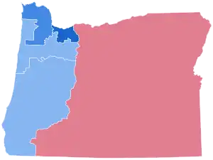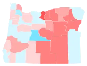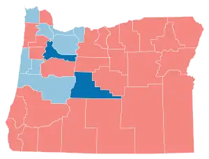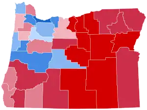Biden won Oregon by 16.08% an increase from Hillary Clinton's 11% victory margin in 2016. No Republican presidential candidate has won Oregon since Ronald Reagan of neighboring California in 1984. Biden flipped two counties Trump won in 2016: Marion County, home to the state capital of Salem, and Deschutes County, anchored by fast-growing Bend. This marked the first time since 1964 that a Democrat won an outright majority in Deschutes County, although Democratic presidential nominees in 1976 and 1992 had carried the county with pluralities.[4]