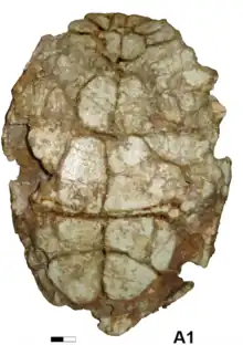 - ↑ Adán Pérez-García (2020). "A European Cenozoic 'Macrobaenid:' New Data about the Paleocene Arrival of Several Turtle Lineages to Europe". Journal of Vertebrate Paleontology. 40 (4): e1795874. Bibcode:2020JVPal..40E5874P. doi:10.1080/02724634.2020.1795874. S2CID 225151817.