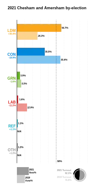 - ↑ "Election results for Chesham & Amersham, 17 June 2021". Buckinghamshire Council. 17 June 2021. Archived from the original on 18 June 2021. Retrieved 18 June 2021.