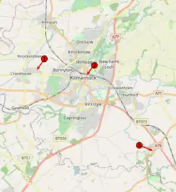 On 4 February 2021, three separate fatal incidents occurred in Kilmarnock, Scotland. The incidents were thought to be linked and involved the same 40-year-old man, Steven Robertson. In the first incident, a woman died after being injured outside University Hospital Crosshouse. In the second incident, a woman died after being stabbed in the town. In the third incident, the man was killed in a road crash just off the A76.[1]