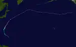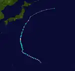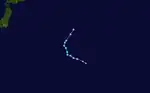 On May 27, the JMA and the JTWC noted the persistence of an area of atmospheric convection about 425 nautical miles (787 km; 489 mi) south-southeast of Guam.[57] The area's nearby environment exhibited low wind shear and warm sea surface temperatures, which were ideal conditions for tropical cyclogenesis.[58] The JMA assessed the area to have developed into a tropical depression on May 29 at 06:00 UTC.[59] The PAGASA made a similar assessment in a Tropical Cyclone Advisory issued at 15:00 UTC.[60] The JTWC later followed with their own assessment, identifying the center of the newly developed tropical depression and assigning the designation 04W.[61] As the system tracked westward, it entered the Philippine Area of Responsibility at 01:00 PHT (17:00 UTC).[62] The PAGASA then named the storm Dante in its first Tropical Cyclone Bulletin for the storm.[63] Dante further organized in the Philippine Sea,[64] and on May 30 at 15:00 UTC, the JTWC upgraded it to a tropical storm,[65] with the PAGASA doing the same at 21:00 UTC.[66] On the next day at 00:00 UTC, the JMA also upgraded Dante into a tropical storm, giving it the international name Choi-wan.[67] Choi-wan's center was exposed due to a tropical upper tropospheric trough from the northeast, inducing shear on the system.[68] On June 1 at 12:30 UTC, Choi-wan made landfall on Sulat, Eastern Samar as a minimal tropical storm,[69] with the JTWC downgrading it to a tropical depression at 15:00 UTC.[70] It made a second landfall on Cataingan at 17:00 UTC.[71] Choi-wan made several more landfalls on the Philippines, making its third landfall on Balud, Masbate at 19:30 UTC. It made a fourth landfall on Romblon, Romblon on June 2 at 00:00 UTC, a fifth on San Agustin, Romblon at 00:50 UTC, a sixth on Pola, Oriental Mindoro at 06:00 UTC, a seventh on Tingloy, Batangas at 11:20 UTC, and an eighth and final landfall on the Calatagan Peninsula before moving into the South China Sea.[72] On June 3 at 03:00 UTC, the JTWC upgraded Choi-wan back to a tropical storm.[73] At 03:00 UTC, the PAGASA removed all Tropical Cyclone Warning Signals as Choi-wan moved away from the country.[74] Choi-wan then exited the PAR on June 3 at 18:00 UTC[75] before weakening into a tropical depression on the next day at 06:00 UTC and re-entering the PAR at 08:00 UTC.[76] Then, it passed southeast of the island of Taiwan[77] before moving out near the Okinawa Prefecture and heading towards Japan. On June 5 at 06:00 UTC, the Japan Meteorological Agency issued their final advisory on the system.[78] 3 hours later at 09:00 UTC, the JTWC upgraded Choi-wan back into a tropical storm,[79] however at 15:00 UTC, the Joint Typhoon Warning Center downgraded the system to a tropical depression, also issuing their final advisory on the system.[80]