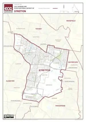 ![]() Map of the Electoral district of Stretton since the 2017 state election | |||||||||||||||||||||||||