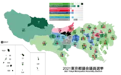 - ↑ "LDP, Komeito fail to win majority in Tokyo assembly". Mainichi Shimbun. 2021-07-05. Archived from the original on 2021-08-21. Retrieved 2021-07-05.