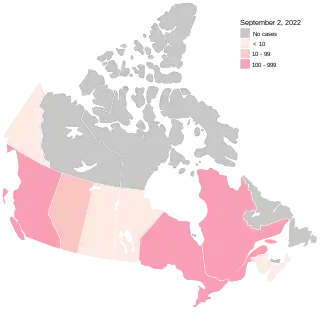 - 1 2 3 4 5 6 7 8 9 10 "Monkeypox: Outbreak update". Canada.ca. August 14, 2022.