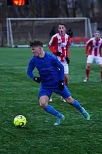 On 2 January 2023, Brøndby announced Jesper Sørensen, formerly Frederiksen's assistant coach, as their new head coach.[35] In January 2023, the club made three signings: Håkon Evjen from AZ and Rasmus Lauritsen from Dinamo Zagreb on permanent deals, as well as bringing in Frederik Winther from FC Augsburg on a short-term loan.[36][37][38] On the other hand, captain Andreas Maxsø departed the club, as well as other first-team regular Sigurd Rosted.[39][38]