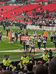 - ↑ "Notts County fans celebrate 'the best end to the best season'". BBC Sport. 14 May 2023. Archived from the original on 14 May 2023. Retrieved 12 October 2023.