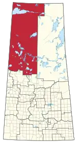 A map of Saskatchewan's provincial ridings, showing Athabasca highlighted in red.
