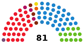 The Cortes of Castile and León were the devolved, unicameral legislature of the autonomous community of Castile and León, having legislative power in regional matters as defined by the Spanish Constitution and the Castilian-Leonese Statute of Autonomy, as well as the ability to vote confidence in or withdraw it from a regional president.[7] Voting for the Cortes was on the basis of universal suffrage, which comprised all nationals over 18 years of age, registered in Castile and León and in full enjoyment of their political rights. Additionally, Castilian-Leonese people abroad were required to apply for voting before being permitted to vote, a system known as "begged" or expat vote (Spanish: Voto rogado).[8]