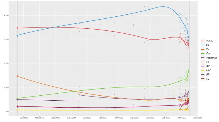 - ↑ "El PP ganaría las elecciones y podría llegar a gobernar con mayoría absoluta". RTVCyL (in Spanish). 29 December 2021.