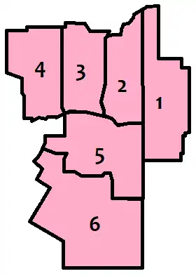 ![]() Map of Guelph's 6 wards | |||||||||||||||||