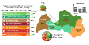 - 1 2 3 "Saeima election results: Seven lists win seats in Latvian parliament". Eesti Rahvusringhääling. 3 October 2022. Retrieved 9 October 2022.