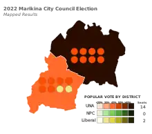 16 of 18 seats in the Marikina City Council 10 seats needed for a majority | |||||||||||||||||||||||||||||||||