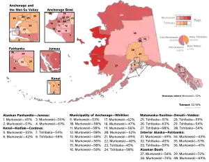 - ↑ "Trump rallies his Alaska faithful against Murkowski, for Tshibaka and Palin". alaskapublic.org. July 9, 2022. Retrieved October 31, 2022.