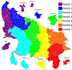 Legislative Assembly elections were held in Uttar Pradesh from 10 February to 7 March 2022 in seven phases to elect all 403 members for the 18th Uttar Pradesh Legislative Assembly. The votes were counted and the results were declared on 10 March 2022.[3]