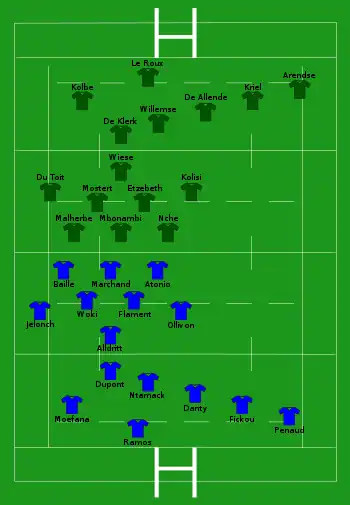 | Try: Marchand 40+1' c Penaud 76' m Con: Ramos (1/2) 40+2' Pen: Ramos (6/7) 7', 10', 33', 38', 47', 73' | Report | Try: Foketi 17' c Campbell 57' c Con: Foley (2/2) 17', 59' Pen: Foley (4/5) 4', 13', 43', 66' Hodge (1/1) 75' |