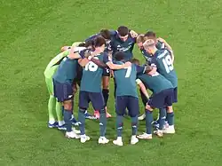 On 26 July, the club played their third and final game of the 10-day USA tour against La Liga side Barcelona at SoFi Stadium, the home of the National Football League's Los Angeles Rams which is also owned by Kroenke Sports and Entertainment. Barcelona took the lead on 7 minutes through Robert Lewandowski tucking in the rebound from Raphinha's shot. Saka levelled for the Gunners in the 13th minute with a close-range finish. Arsenal were awarded a penalty on 21 minutes, but Saka side-footed his effort wide of the right-hand post. Barcelona retook the lead through a deflected Raphinha free-kick in the 34th minute. Arteta's side drew level again on 43 minutes as Ødegaard's header was diverted home by Havertz.[28][29][30] Trossard put the Gunners ahead in the 55th minute with a left-footed strike, then added his second with a first-time finish on 78 minutes. Ferran Torres pulled one back for Barcelona on 88 minutes. Just a minute later, Vieira curled a shot from 25 yards into the top left corner, helping the Gunners win 5–3.[29][30] Arteta's team flew back to London straight after the game.[28]