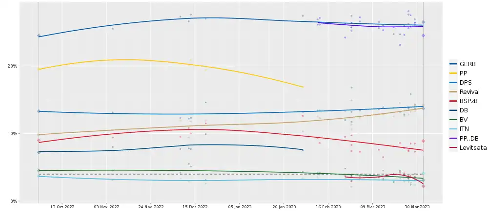 - ↑ ""Маркет линкс" и "Алфа Рисърч" дават минимална преднина на ГЕРБ-СДС пред ПП-ДБ". bnr.bg (in Bulgarian). Retrieved 2 April 2023.