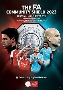 Manchester City qualified for the 2023 FA Community Shield as winners of the 2022–23 Premier League.[7] The club later faced local rivals Manchester United in the 2023 FA Cup final, on course to complete a continental treble.[8] Manchester City defeated Erik ten Hag's side to win their seventh FA Cup and as a result, Arsenal qualified for the 2023 FA Community Shield as Premier League runners-up. This was a rematch of the 1934 FA Charity Shield and 2014 FA Community Shield, which Arsenal won 4–0[9] and 3–0,[10] respectively.