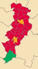 ![]() Map of the wards of Manchester City Council coloured by winning party | |||||||||||||||||||||||||||||||||||||||||||||