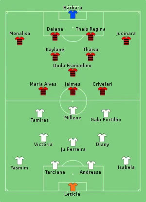| Scoring leader(s) | Duda Giovanna Crivelari Tamires (3 goals each) |