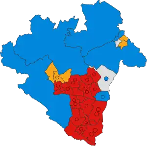 | Labour | 54 | 38 | 2 | 0 | 70.4 | 52.9 | 42,725 | +5.3 | ||