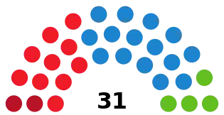 The City Council of Zaragoza (Spanish: Ayuntamiento de Zaragoza) is the top-tier administrative and governing body of the municipality of Zaragoza, composed of the mayor, the government council and the elected plenary assembly.[1] Elections to the local councils in Spain are fixed for the fourth Sunday of May every four years.[2]