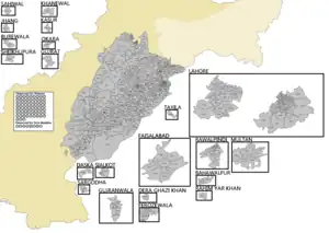 ![]() Map of Punjab with Provincial Assembly constituencies | |||||||||||||||||||||||||