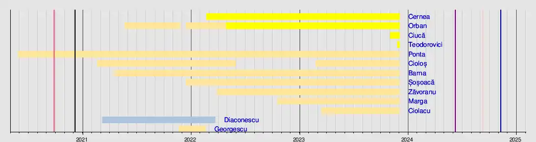 President Klaus Iohannis is not eligible for another candidacy, therefore the party needs to find another suitable candidate. Former Prime Minister and former PNL president Ludovic Orban stated in Tecuci, Galați County, on 22 May 2021, that he does not "rule out" a candidacy in 2024.[3] On 25 June 2021, then-Prime Minister Florin Cîțu stated in Piatra Neamț that he is "currently not considering" a presidential candidacy.[4] Furthermore, fellow party leaders consider proposing the incumbent president Klaus Iohannis as Prime Minister, after his presidential term ends in 2024.[5]