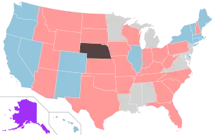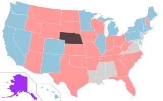 | Nebraska | 25[lower-alpha 4] | 49[lower-alpha 4] | 51[lower-alpha 4] | 4 | N/A (unicameral) | |||