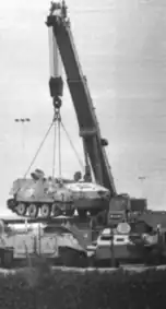 By 17 January, materials were being recovered from the first engagement of the war, the battle of Khafji.[35] Among the materials recovered from the city was an Iraqi T-55 Enigma, a variant of the Soviet main battle tank given to Iraqi battalion commanders which was upfitted with indigenous non-explosive reactive armor that resisted light and medium-strength anti-tank weapons.[36] After analyzing the armor in coordination with NGIC weapons experts, the 203rd developed a method with which American forces could counter its effect.[24] Only a handful of this variant of the T-55 are known to remain in existence, one remains with the 203rd at Aberdeen.[37] The C/JCMEC also served a critical role when allied forces tracked down the remains of three Scud missiles. The 203rd examined the fragments, and helped designer Raytheon and the Army develop changes to the Patriot air defense system which improved its effectiveness against the Soviet-made ballistic missile.[24] In total during Operation Desert Storm, the 203rd was responsible for having obtained six out of one US intelligence agency's "top 10" list of desired foreign materiel items. It captured 207 additional items new to American intelligence.[24]