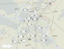 The 20th Panzer Division spent the winter of 1944 fighting in the Polotsk, Vitebsk, Bobruisk and Cholm areas. Having suffered heavy losses during the Red Army's Operation Bagration, the division was sent to Romania for refitting in August 1944. In October, the division was sent to East Prussia, and then sent to Hungary on 6 January, 1945, to partake in the Garam (S:Hron) battles raging in northern Hungary.[4] It then retreated through Breslau, Schweinitz and Neisse in Silesia (now part of Poland). The division was transferred to Görlitz (east of Dresden on the post-1945 German frontier with Poland). On 19 April 1945, the division was involved in a counteroffensive west of Görlitz in the direction of Niesky, but disengaged three days later and retreated west. It counterattacked again in the Bautzen area, succeeding in relieving the local garrison at heavy cost to Soviet forces. By 26 April 1945, the division was situated northwest of Dresden; by 6 May it retreated south across the Czechoslovakian border. Some divisional elements surrendered to the Red Army near Teplice-Sanov (northwest of Prague), whilst the rest, including elements of Panzer-Aufklärungs-Abteilung 20. surrendered to the U.S. Army at Rokycany, (between Prague and Plzeň); they were handed over to the Soviet forces.[3]