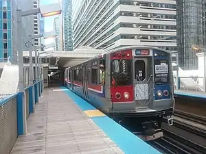 ![]() A 2400-series train at the Clark/Lake station | |