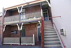 These large terraces feature elaborate timber verandahs with ornamental brackets in the Federation style. Also, they have teracotta Marsailles roofs. The terrace consists of a two bedroom units on both the ground floor and the first floor. The stairs leading to the upper units are generally shared by two units, with the entry to the lower units directly to the sides of them. Storeys: Two; Construction: Facebrick walls, tiled roof, timber verandah and balustrading. Style: Federation.[1]