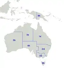 In March 1939 a regional command structure was adopted, with 2nd Military District becoming Eastern Command and the 5th Military District was redesignated Western Command, while the 1st Military District in Queensland became Northern Command, and the three southern districts, the 3rd, 4th and 6th Military Districts in Victoria, South Australia and Tasmania, were amalgamated into Southern Command. This required legislative changes to the Defence Act (1903), and did not come into effect until October 1939.[2][1]