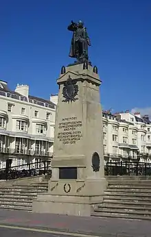 While Cardwell's sub-districts were often referred to as 'brigades', they were purely administrative organisations and the Volunteers were excluded from the 'mobilisation' part of the scheme. The Stanhope Memorandum of December 1888 proposed a more comprehensive Mobilisation Scheme for Volunteer units, which would assemble in their own brigades at key points in case of war. In peacetime these brigades provided a structure for collective training.[15][16][17] Under this scheme the 2nd Sussex formed part of the Dover Brigade, later entitled the South Eastern Brigade, before the Royal Sussex VBs formed their own Sussex Brigade at the end of the 1890s. This became the Sussex and Kent Brigade in the early 1900s, with its HQ at St Elmo, Worthing.[6][18] Colonel Sir Henry Aubrey-Fletcher commanded this brigade from 1897 to 1904[13]