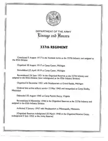 - 1 2 "337th Regiment: Lineage and Honors". US Army Center of Military History.