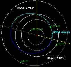 Orbit diagram of asteroid Amun with location as of September 9, 2012