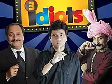 3 Idiots is a Pakistani television series that airs on Aaj TV. Waseem Abbas plays an ordinary office employee, Sabir, and Iftikhar Thakur personates an uneducated villager.[1] On 10 March 2012, Aaj TV canceled the show.