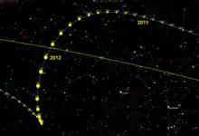 - ↑ "AstDys (433) Eros ephemerides for 2012". Department of Mathematics. Pisa, Italy: University of Pisa. Retrieved 27 June 2010.