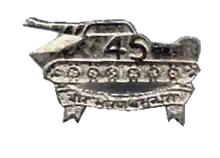 The cap badge of the regiment between 1941 and 1946 consisted of the numeral ‘45’ with a scroll above with the words ‘Indian Armoured Corps’ and one below with the word ‘Cavalry’.[21] The present insignia consists of the PT-76 tank with a scroll below, inscribed with the regimental motto.
