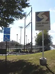 49th Street station is a SEPTA Regional Rail station in Philadelphia. It is located at 1104 South 49th Street in the Kingsessing section of Southwest Philadelphia, and serves the Media/Wawa Line. In 2013, this station saw 62 boardings and 52 alightings on an average weekday.[2]