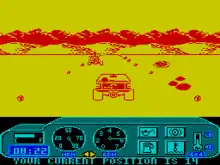 During the race the player has to avoid obstacles that are on the way - each collision brings down the endurance level. Some of the obstacles, however, may be useful in jumping over rivers. Each map is divided into three section and between them there are checkpoints were cars can be repaired or refueled without using tools loaded on them.