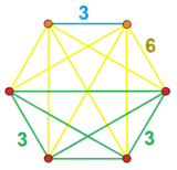 These are seen in the vertex figures of bitruncated and tritruncated regular 6-polytopes, like a bitruncated 6-cube and a tritruncated 6-simplex. The edge labels here represent the types of face along that direction, and thus represent different edge lengths.